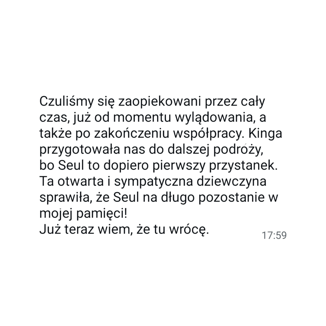 Dla mnie najważniejsze jest, aby podróż nie była tylko zwiedzaniem i odhaczeniem punktów z listy, ale prawdziwym odkrywaniem kultury, tradycji i życia codziennego Korei.