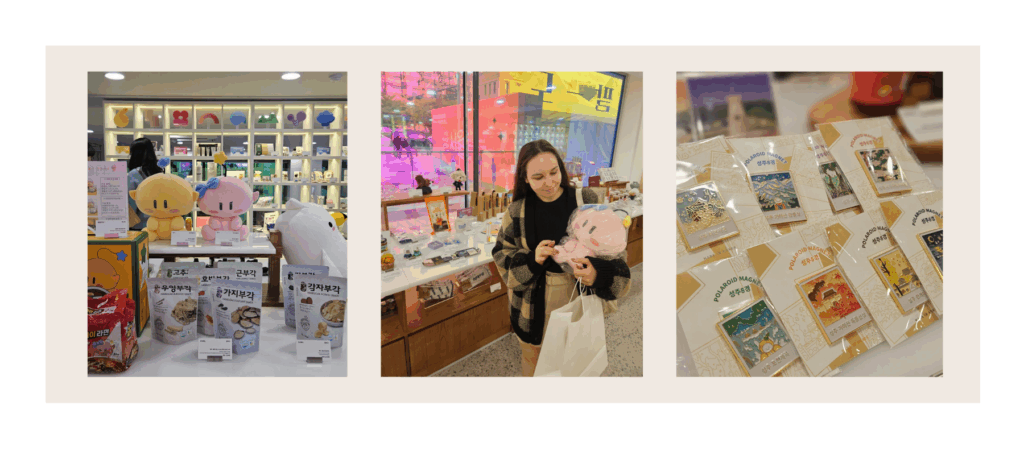 A skoro już o pamiątkach mowa – w tym samym budynku, piętro niżej, znajduje się Antenna Shop z lokalnymi produktami z różnych regionów Korei: od herbaty Hadong po tradycyjne przekąski czy rękodzieło. To idealne miejsce, by przy okazji zdobyć coś wyjątkowego do walizki albo podarunek dla bliskich.