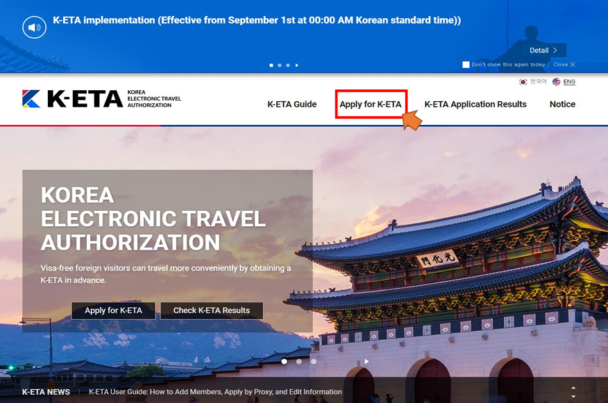 K-ETA (Korea Electronic Travel Authorization) to elektroniczna autoryzacja podróży, która została wprowadzona 1 września 2021 roku, czyli w trakcie pandemii COVID-19. Official Korea Electronic Travel Authorization Website, Korea Immigration Service < K-ETA